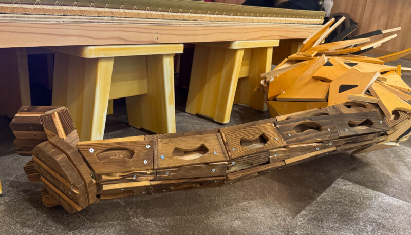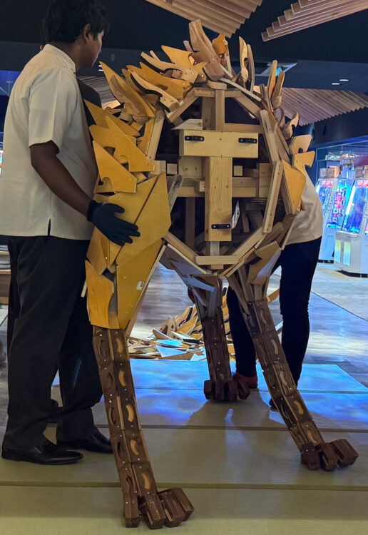 完成した作品は、制作をしていたソラニワで一度分解され、杉乃井パレス1Fに運びこまれ再び組み立てられました。