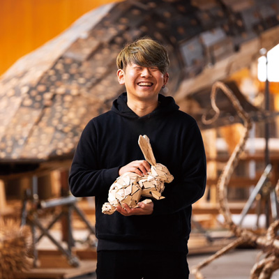 「この部分はどの廃材を使用して作られているのかなと、この作品を見た人に楽しんでもらいたい。またこのオオカミに会いたい、そしてこの作品を通して『杉乃井ホテル』さんに来てもらうキッカケ作りができれば」と、加治氏はこの作品について話を聞かせてくれました。