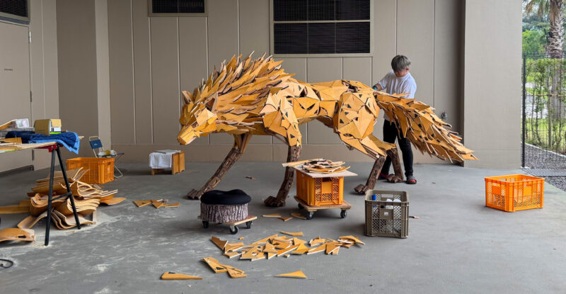 現在は、廃材で原寸大サイズの動物を作るアーティストとして独立。