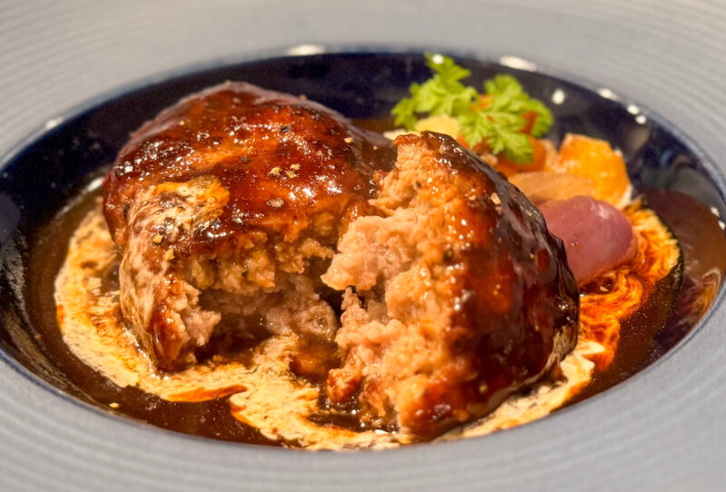 選べるメインは、デミグラスハンバーグ、鶏もも肉のロティ ~トマトソース~、月替わりのメインの3種類から選べます。今回はデミグラスハンバーグを選びました。