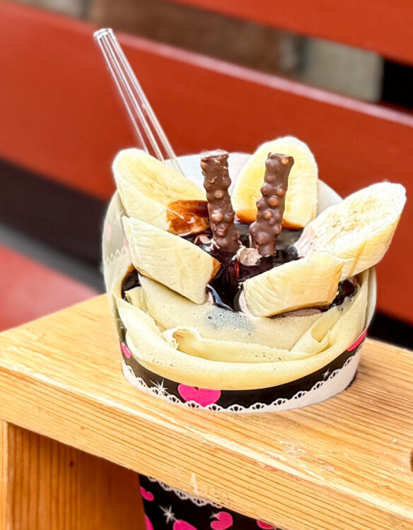 注文を受けてから焼いてくれるパリパリ生地のクレープです。