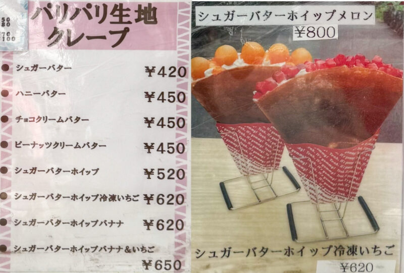 旬のフルーツを使用した期間限定クレープです。年末からは、フレッシュないちごを使用したシュガーバターが販売されるそうですよ。
