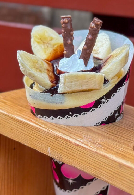 甘さ控えめでしっとりとした生クリームがたっぷり! 生クリームのミルキーな味わいとバナナがバツグンの相性です。