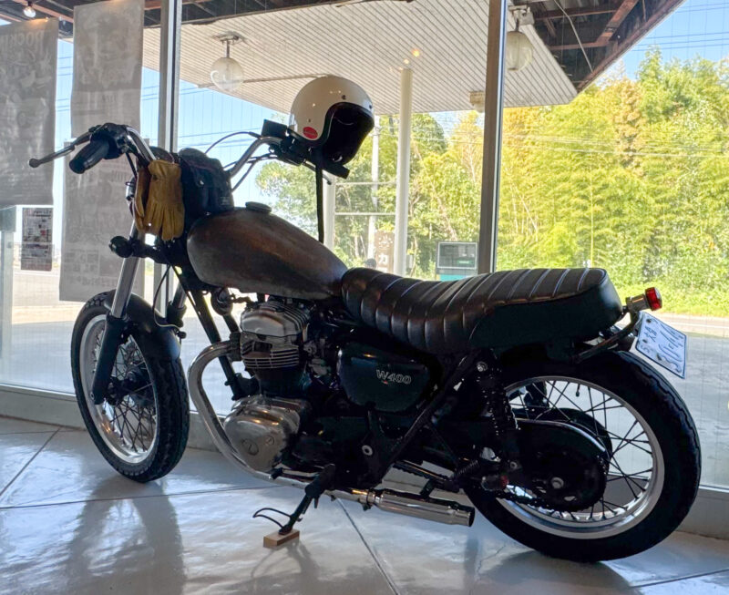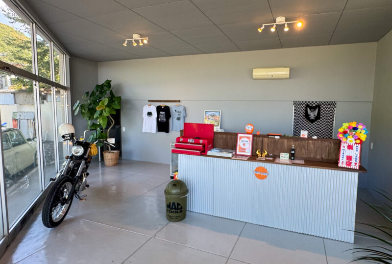 オーナーさんご夫妻のバイクや車が店内外にあります。バイカーさんが寄られることも多いそうです。訪問中も県外からツーリング中に寄られたお客さんがいらっしゃいました。
