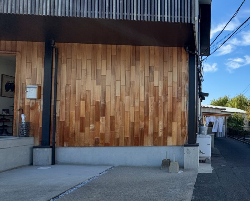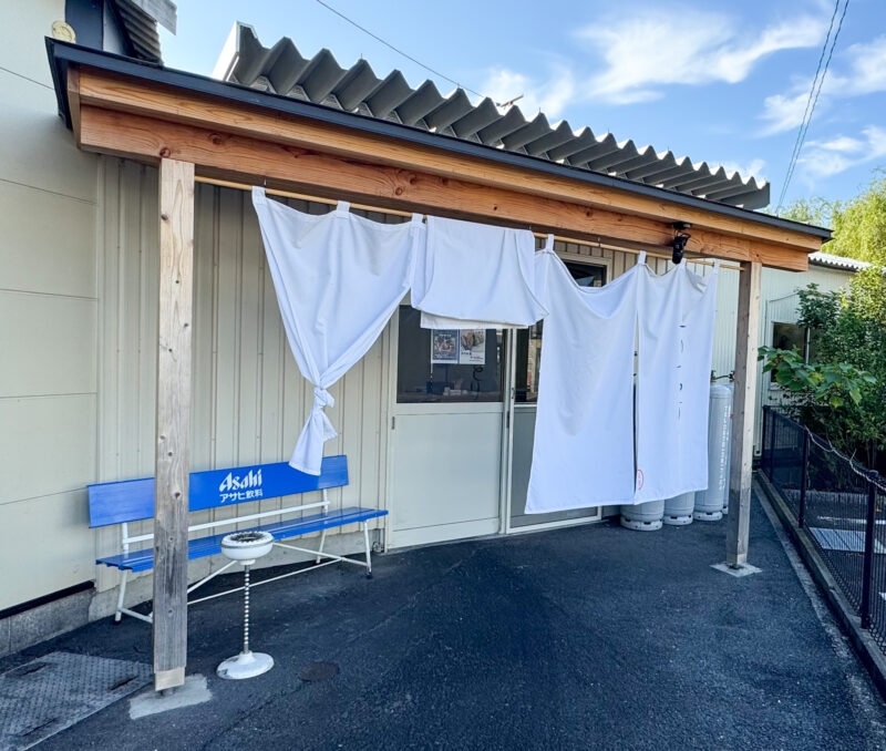 敷地に入ると大きな建物はあるけれど、お店はどこ?! よく見ると建物の右端に白い暖簾が…