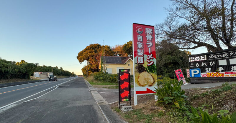 大分空港の近く! とSNSで見かけた情報を頼りにお店を探していると、大分空港から車で1分ほどの場所に大きな看板を発見!