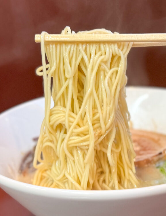 ストレートの細麺は、スープがよく絡みます。麺を食べる度に、おいしいスープをたっぷり堪能することができます。