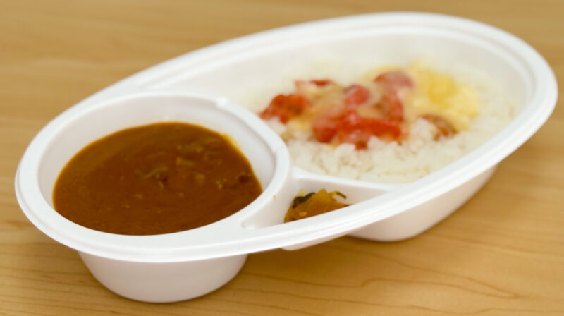 濃厚なチーズ! そしてトマトの酸味がアクセントになります。チーズトマトトッピングの威力は絶大です! あっさりめのルーなので、トマトチーズがカレーの味わいをしっかりと際立たせます。