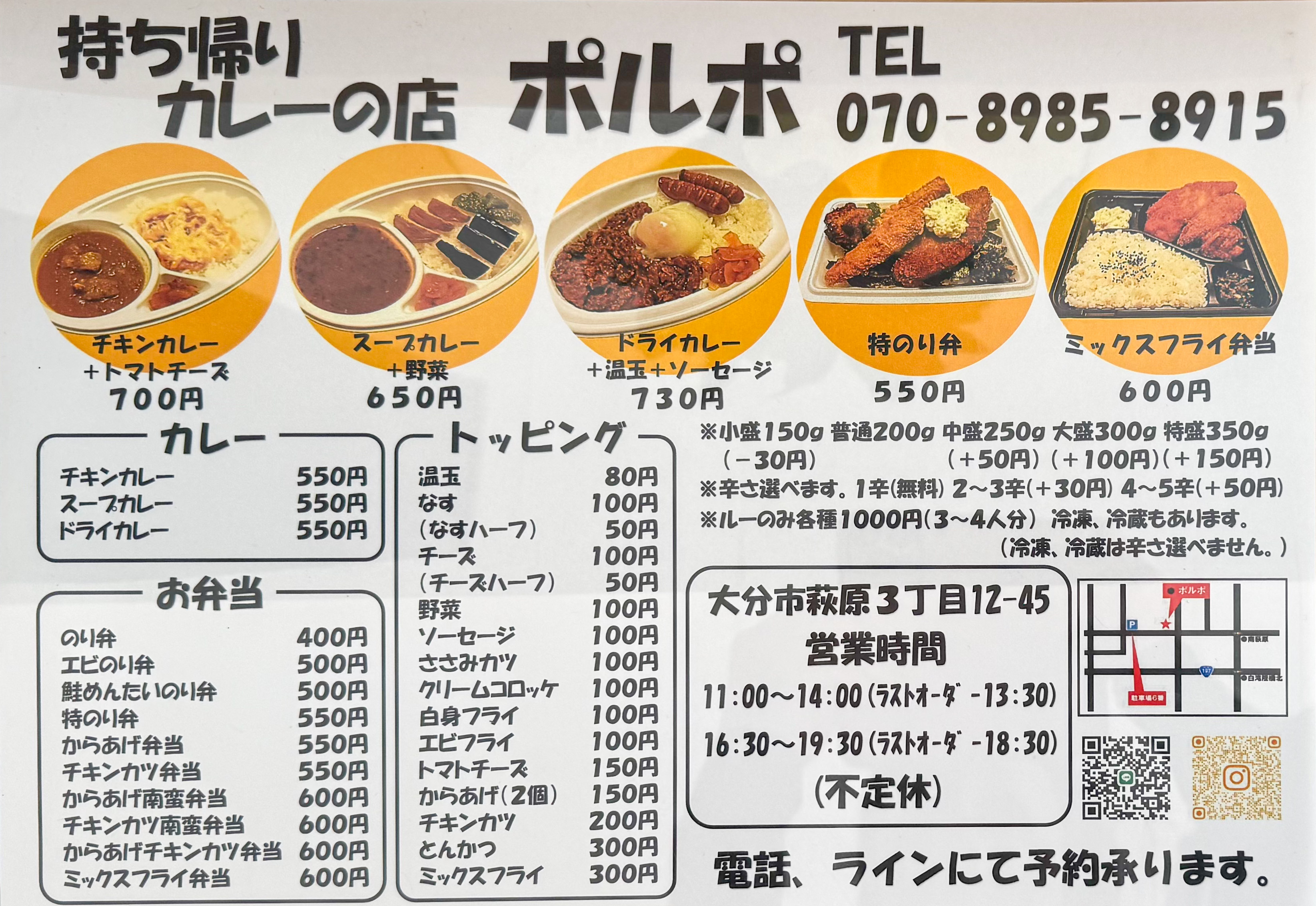 今回ご紹介するのは、大分市に2025年11月10日(月)オープンした『持ち帰りカレーの店 ポルポ』さんです。駐車場はお店の前と、向かって左隣にあるアパートの先の月極駐車場6番が『ポルポ』さん専用になります。