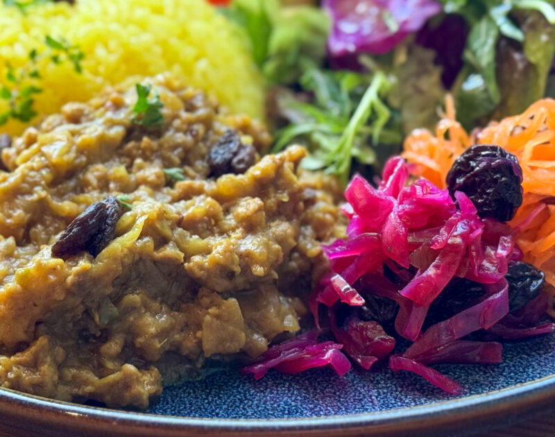 クミンやガラムマサラなどのスパイスと青とうがらしを使用してキーマカレーが作られています。青とうがらしが効いているので、デフォルトでもしっかりとした辛みのあるカレーです。辛党さんには嬉しい味わいですよ♪