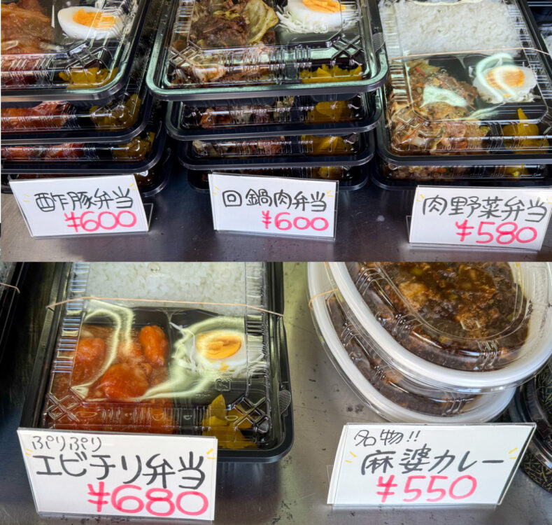 お惣菜はいろいろあります。この日は、エビチリや回鍋肉、からあげなどがありました。
