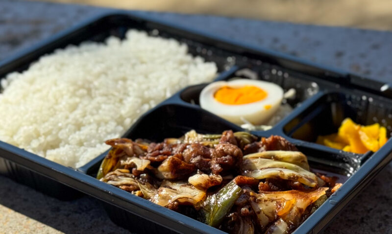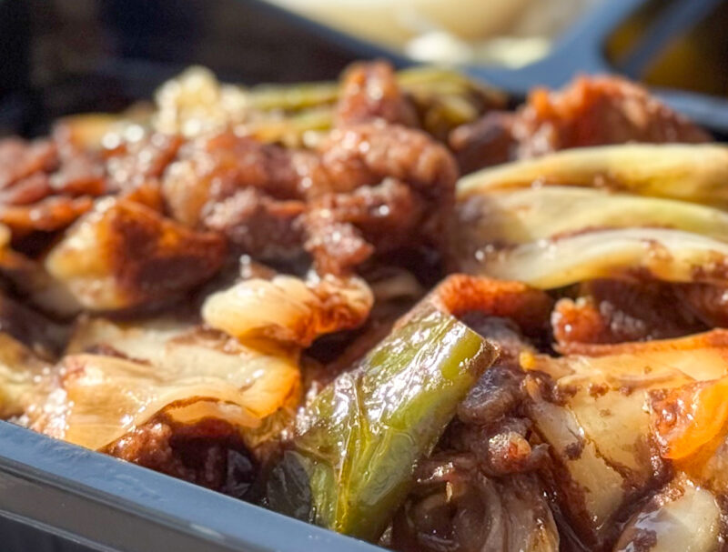 弁当の中で一番人気と教えてもらいました。ご飯との相性がバツグンの回鍋肉です。