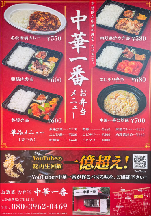 “YouTubeの総再生回数一億回突破!チャンネル登録者15万人の中華YouTuberが作る本格中華弁当”と記載されたインパクト大なお店のSNSを見て、気になりすぎてお店へ!