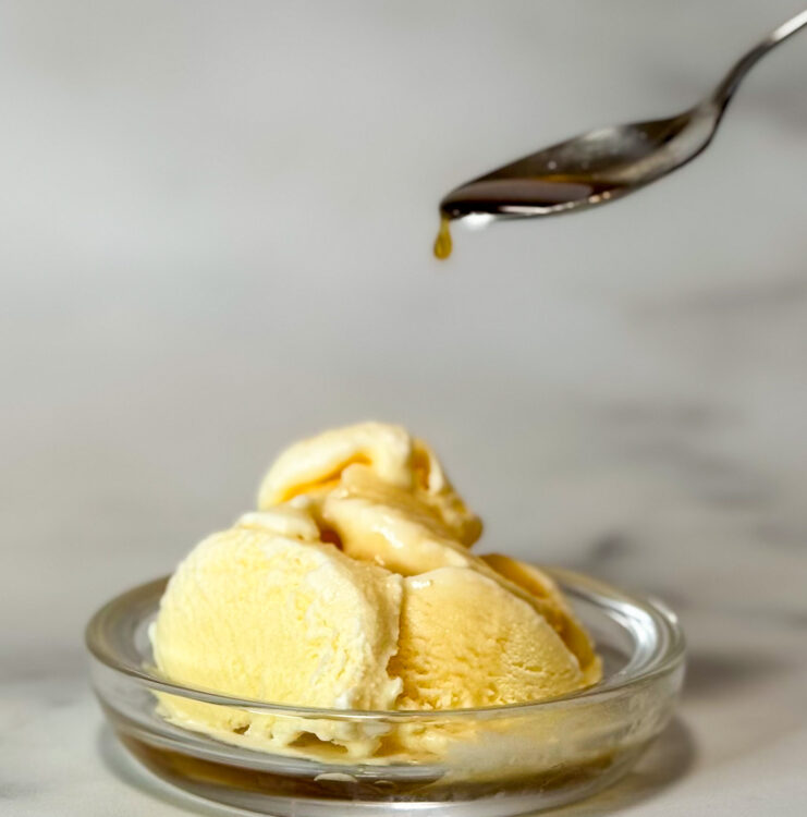 次は、スーパーやコンビニなどで販売されているバニラアイスが一瞬で、上品で濃厚な味わいに変化する方法です! クルッと一周ほどアイス全体にシロップをかけると、重厚感のあるアイスになります。コーラの味わいはほぼなく、クラフトコーラシロップがかかっていると言われても信じられないと思うほどです。