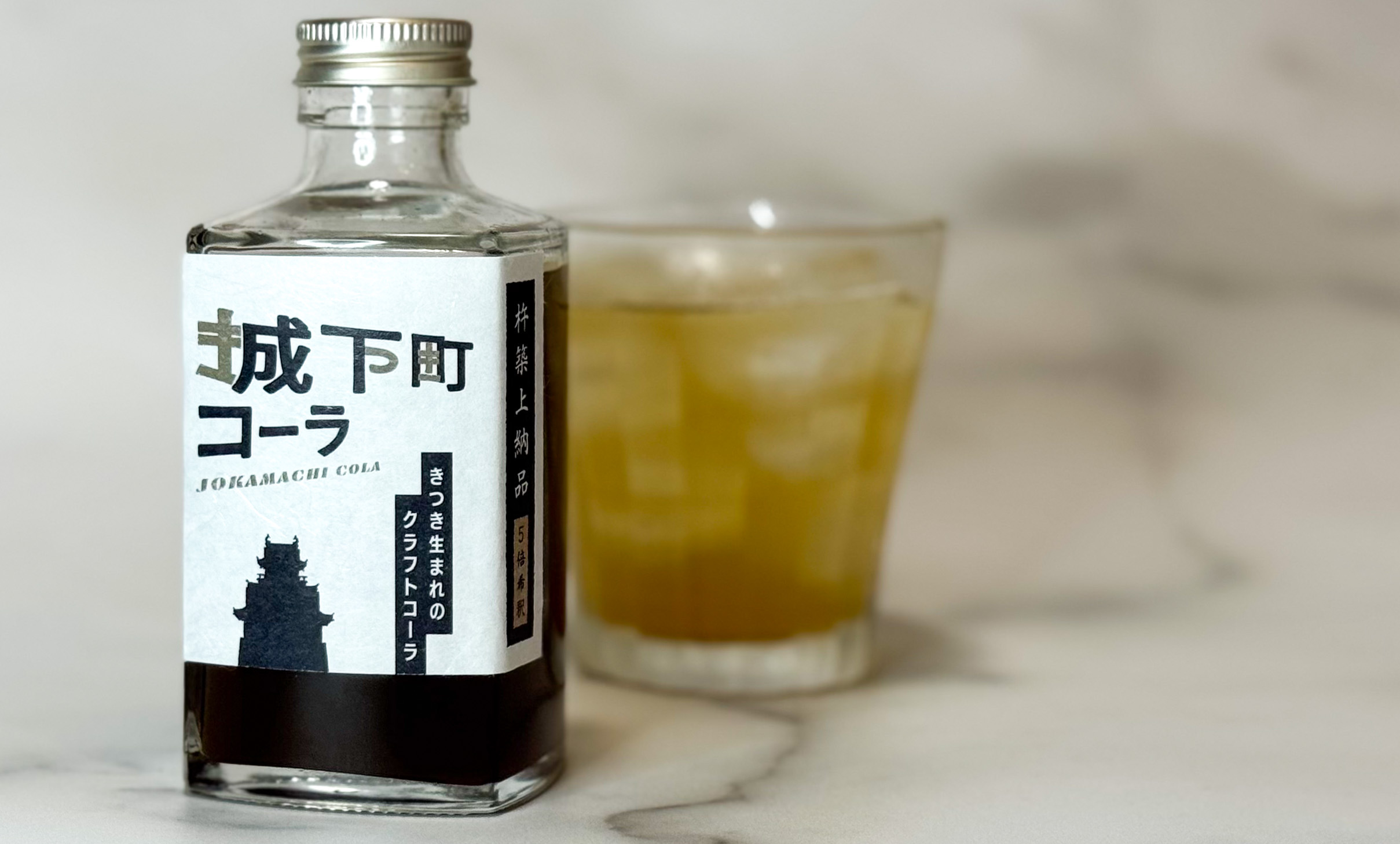 山浦地区で採取した和ハーブや特産品の柑橘類を使用して『杵築市商工会青年部』が『城下町コーラ』を完成させました! 売上金は、まちづくりや子どもたちへの活動などの地域振興として活用しています。