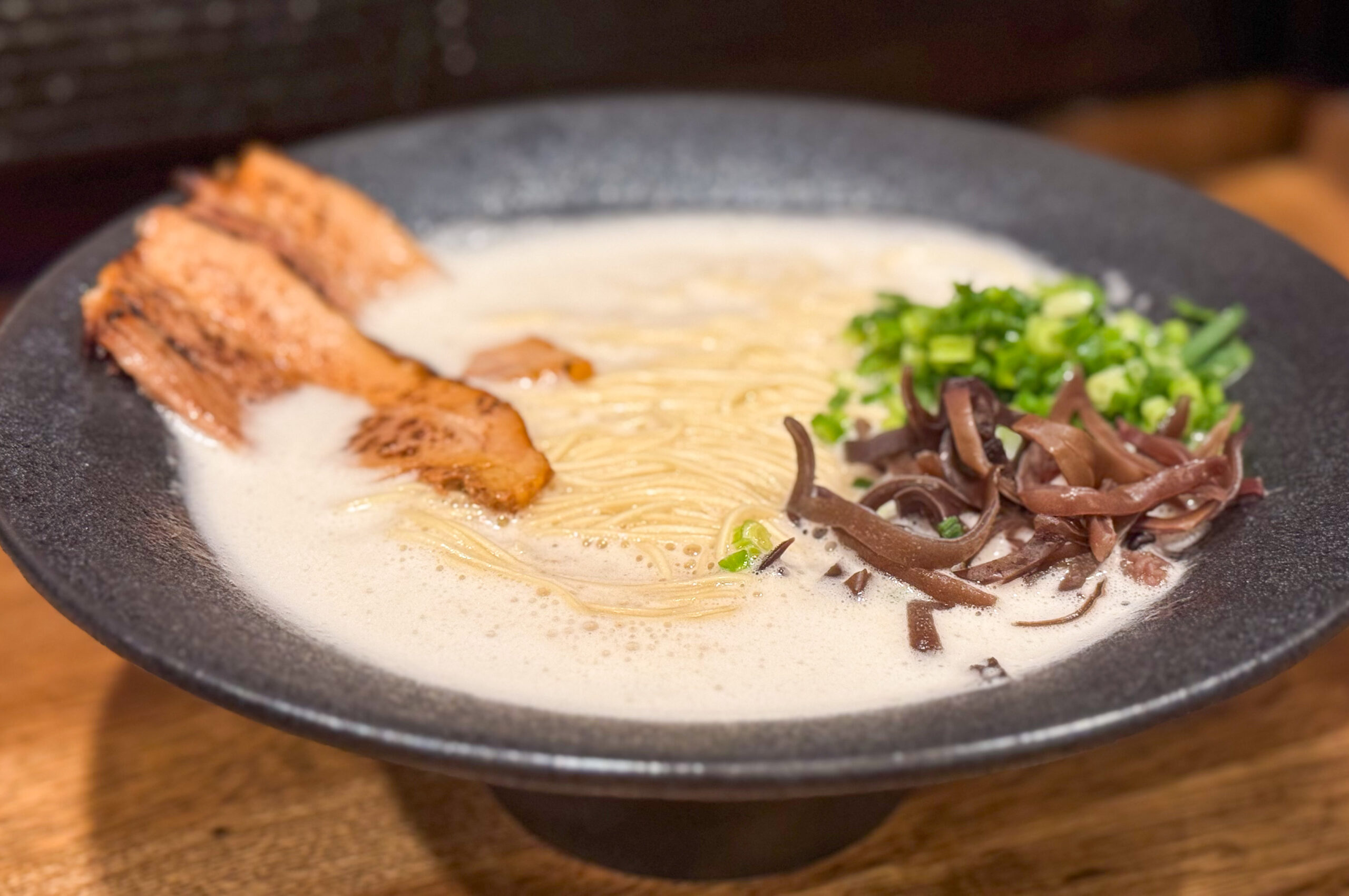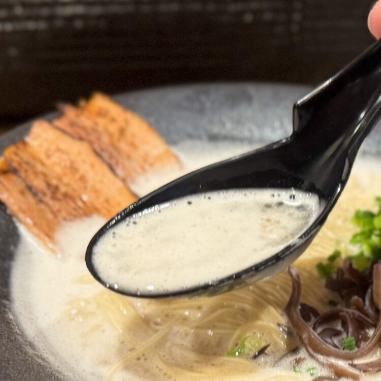 見た目以上にクリーミーで濃厚な豚骨スープです! 大分では珍しい泡系のスープは、クセになる味わいです。濃厚なのに食べた後、あまり口がベタついていませんでした。