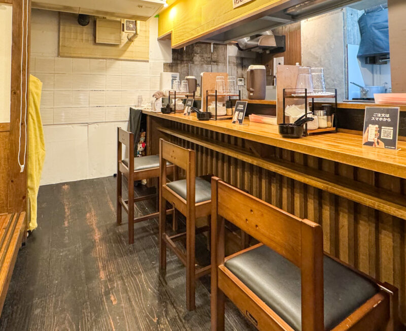 店内は、カウンター席があります。メニュー表等で仕切られているため、周りを気にせずに食べることができます。女性のお一人様も気兼ねなく行きやすいお店ですよ。