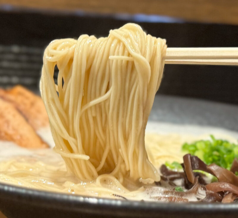 細麺にスープがよく絡みます! 麺の硬さも選べるので、お好みの食感も楽しめますよ。