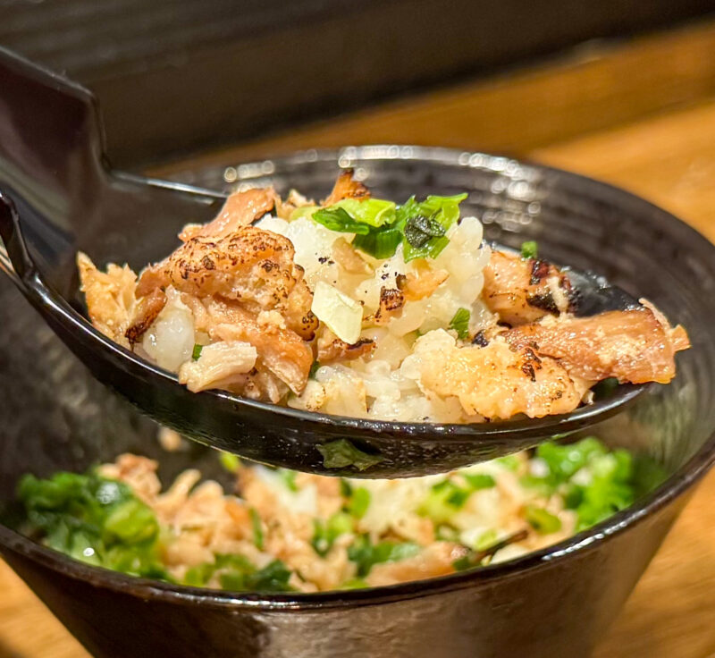 炙ったチャーシューのほぐしがたっぷり! 香ばしい風味が口の中で広がります。ネギのシャキッとした食感がアクセントになります。