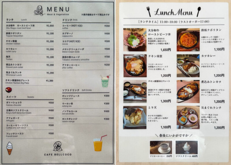 ボリューミーなランチ、スイーツ、ドリンクのメニューです。