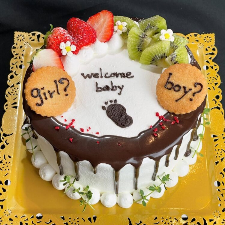 お腹の赤ちゃんの性別が判明した際に用いる特別なケーキのことです。ケーキの中のクリームの色や中に入っているフルーツで性別をお知らせする、サプライズ感満載のケーキです。今回ご紹介する画像のケーキは、いちごなら女の子、キウイなら男の子。ケーキを切るまで分からないため、よりワクワク感が増します!