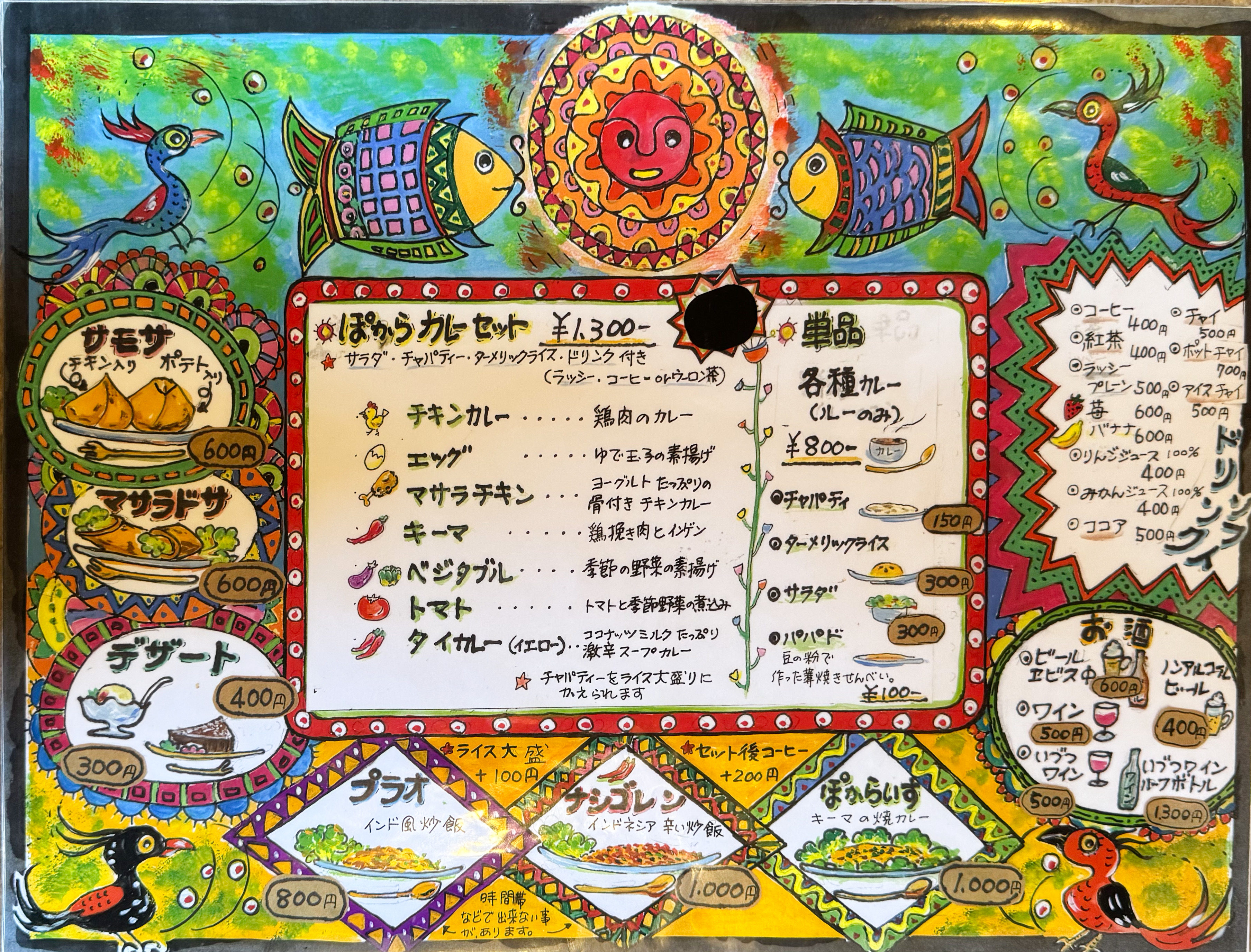 カラフルなイラストが可愛いメニュー表です。行くたびに見入ってしまいます。