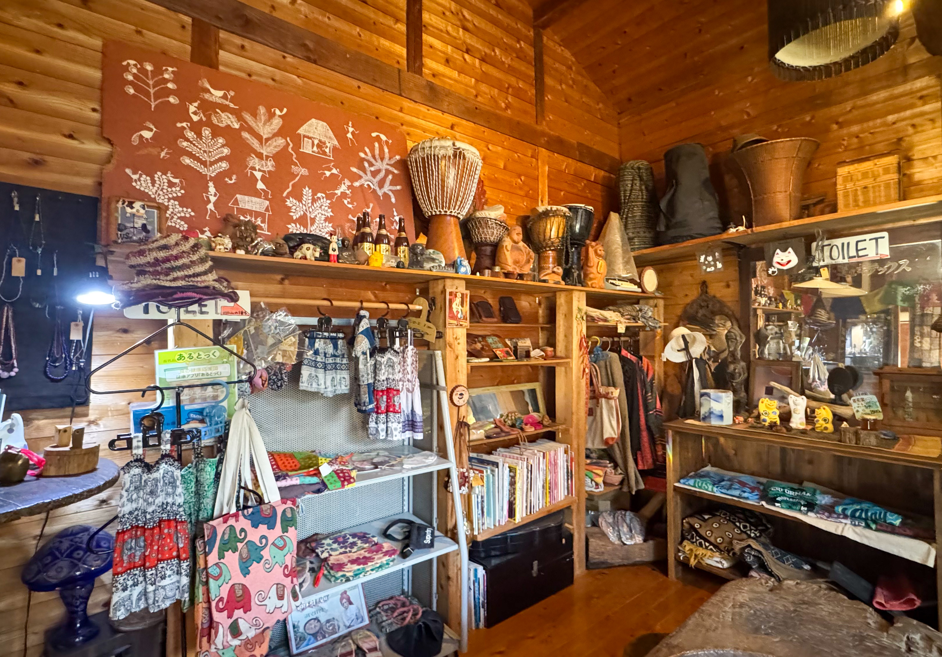 奥には、異国情緒あふれる雑貨などが販売されています。