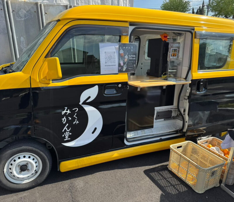 不定期でキッチンカー営業もされています。キッチンカーでは、青果やミカンジュースなどを販売! 大分県内で青果の購入ができるのは、津久見の直売所とキッチンカーのみです。出店情報はつくみみかん堂 Instagramをご覧ください。