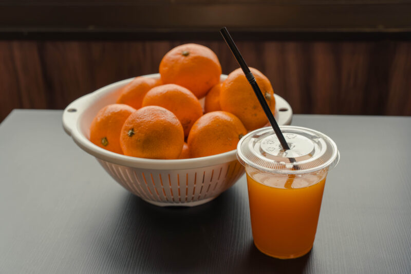 1杯に約10個ほどのみかんが使用されています。正真正銘100%のジュース! みかん果汁そのものをゴクゴク飲めるなんて幸せすぎる♡ こんなにもフレッシュなジュースを知ると、他のジュースを躊躇してしまう…。