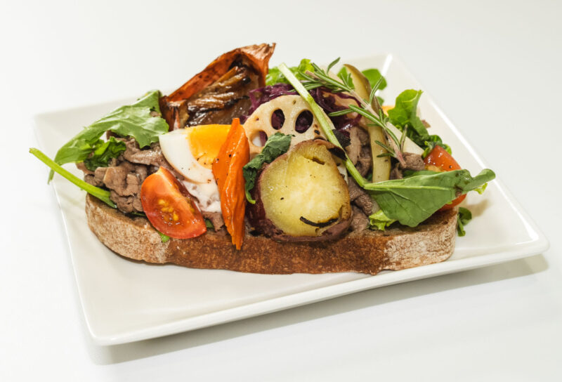 豊後牛のマリネと彩り野菜のオープンサンド 1,550円