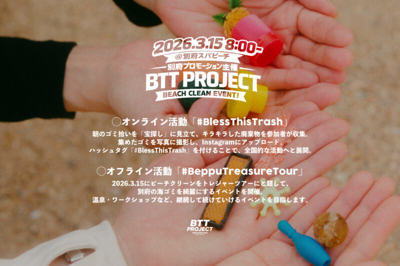 2026年3月15日(日)大分県別府市にある『別府スパビーチ』で、ビーチクリーン活動を“宝探し”として再構築した体験型イベント『BTT PROJECT』が開催されます。