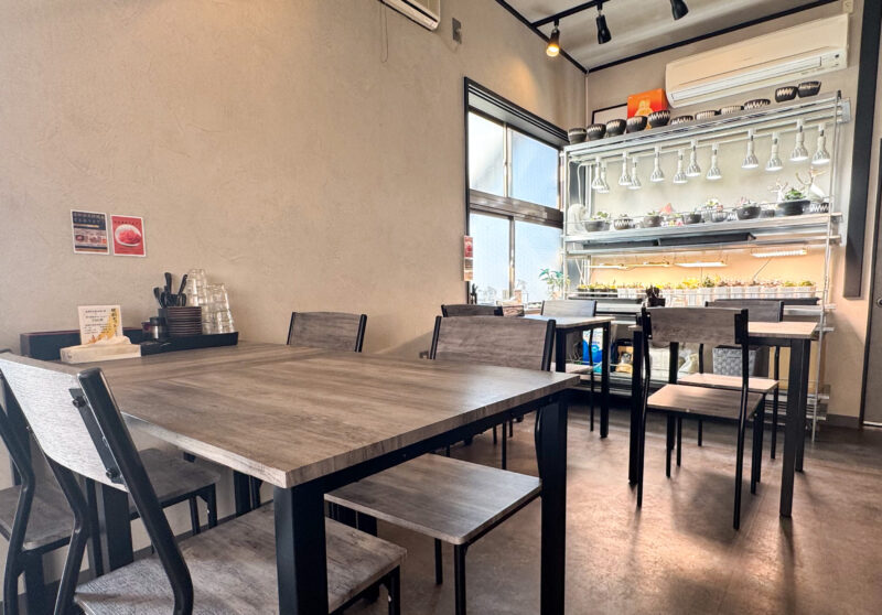 店内はカウンター席とテーブル卓があります。奥には、オーナーさんがおこなっている別事業のアガベが店内にも並べられています。見入ってしまう人もいるそうですよ♪
