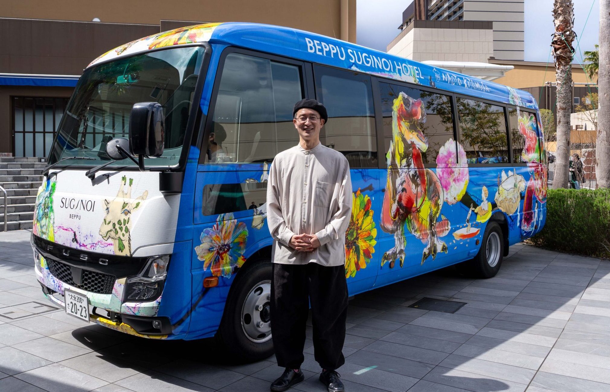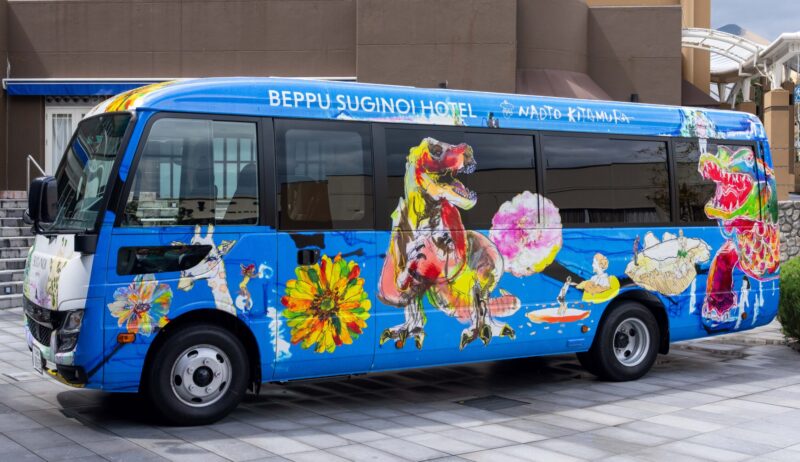 4/1~運行開始!北村直登の描くコラボラッピングバス『別府温泉 杉乃井ホテル』
