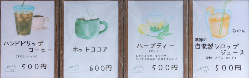 コーヒーだけではなく、自家製シロップジュースも販売されています。