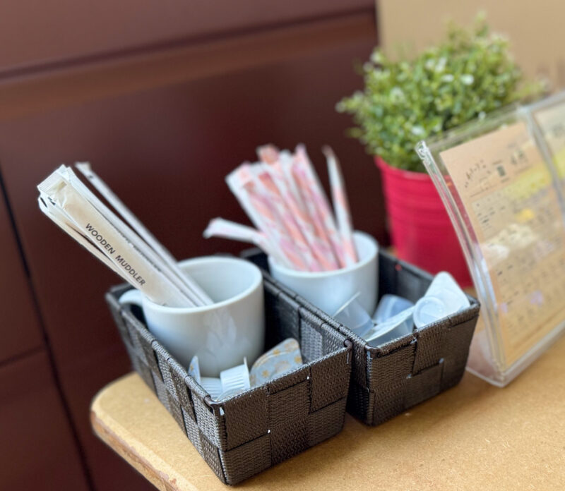 車体の前には、お好みで使用できるミルクやシュガーが設置されています。