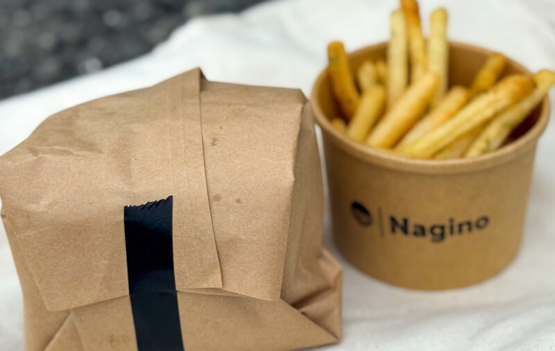 その場で食べずに持ち帰る場合は、バーガーは包みに包んでくれ、ポテトはカップへ入れてくれます。