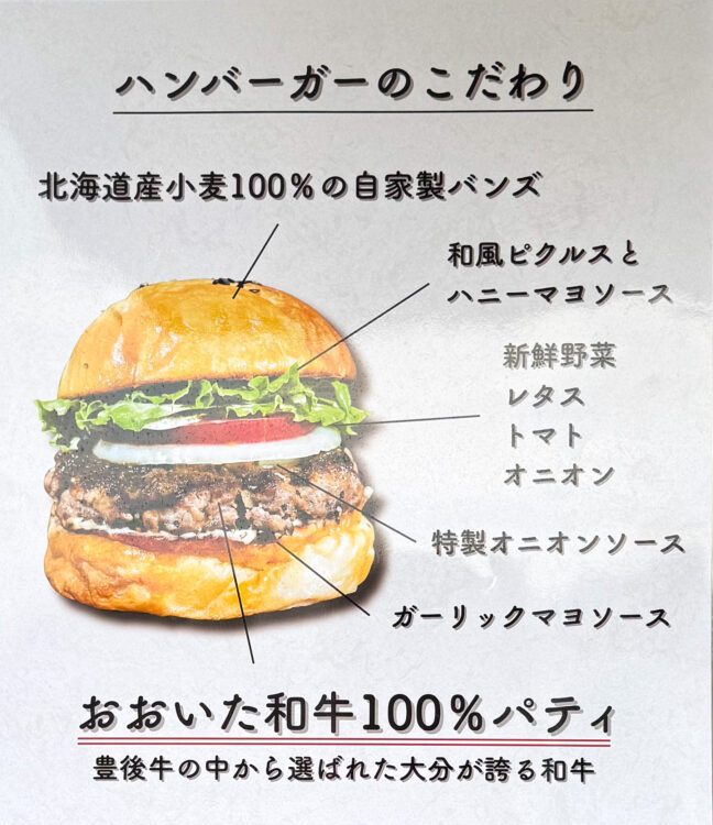 おおいた和牛100%を使用した贅沢なバーガーが販売されています。
