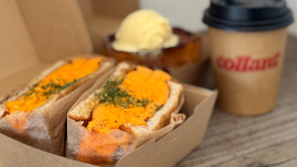 サンドやフレンチトーストは、テイクアウトで注文するとボックスに入れてくれます。その場で食べる場合は、お皿に盛り付けをしてくれますよ。