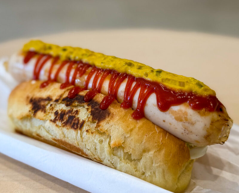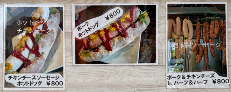 ポークホットドッグとチキンチーズソーセージホットドッグが販売されています。オーナーさんが腸詰めしたソーセージのみの販売もされています。