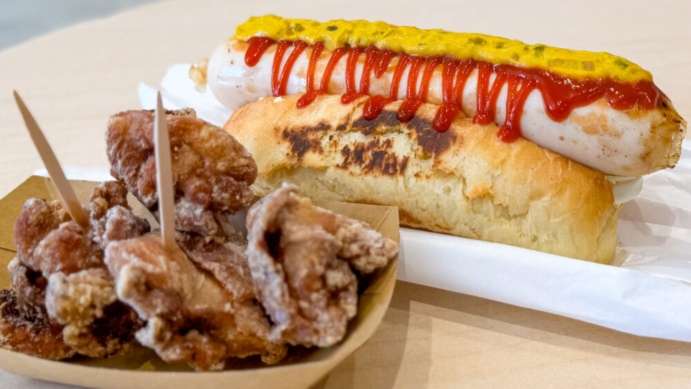 ポークホットドッグとチキンチーズソーセージホットドッグが販売されています。オーナーさんが腸詰めしたソーセージのみの販売もされています。